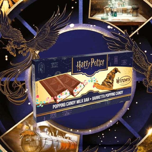 Niet myšlienky, ktorú by ste dokázali skryť pred mojím vševidiacim pohľadom Práve týmito slovami sa odhaľuje čarovný Triediaci klobúk z Rokfortu. Do tejto očarujúcej atmosféry sa prenesiete jednoducho stačí zahryznúť sa do lahodnej mliečnej čokoládovej tyčinky s jemnou mliečnou náplňou a hravým popping candy. Magický chuťový zážitok, ktorý rozprúdi fantáziu a prebudí kúzla v každom súste.